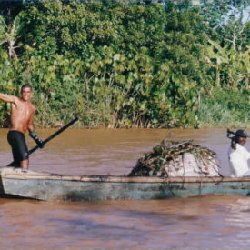 Apoio dos pescadores com bote de pesca, na ação de limpeza do rio Doce.